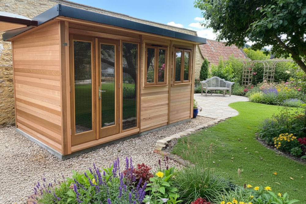 TOP TIP: Upgrade to vertical cedar cladding and make this garden office pod look absolutely stunning.