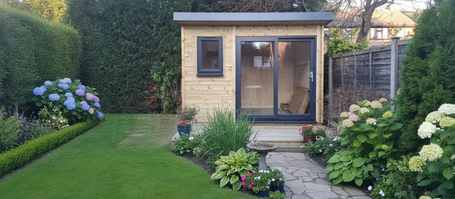 Garden rooms and offices require a flat & level pad of either concrete or paving slabs.