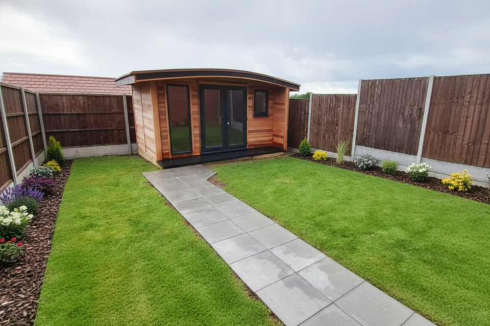 Garden rooms and offices require a flat & level pad of either concrete or paving slabs.